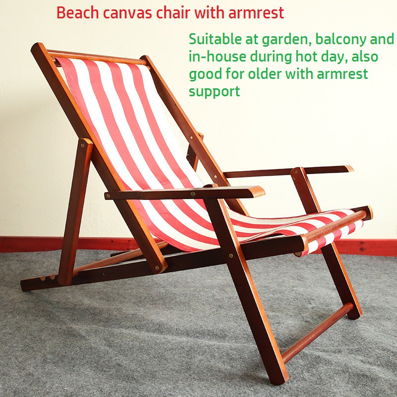 Portable Solid Wood Beach Canvas Chair Outdoor Folding Recliner Relax Chair Shopee Malaysia